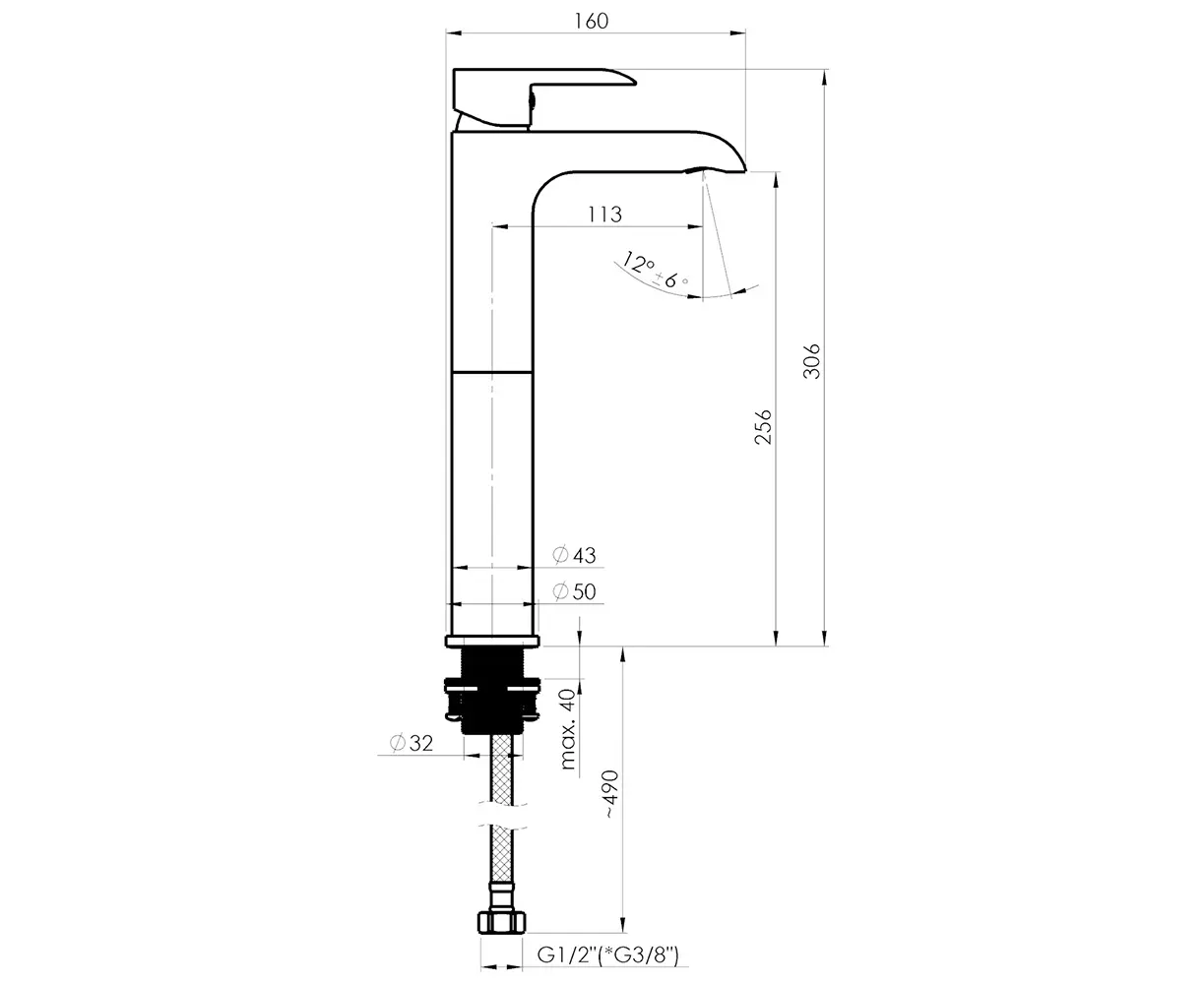 შემრევი ხელსაბნის მაღალი Rubineta ULTRA-18/D (N) (GD)