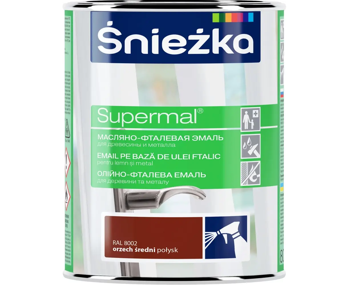 ემალი ზეთოვან-ფთალური Sniezka Supermal RAL8002 800 მლ პრიალა კაკალი საშუალო