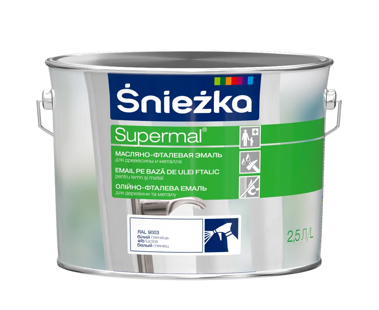 ემალი ზეთოვან-ფთალური Sniezka Supermal RAL9003 2.5 ლ პრიალა თეთრი