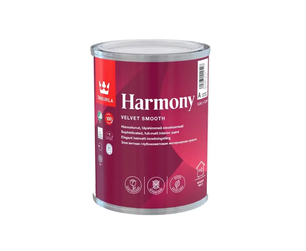 Tikkurila Harmony C 0.9 ლიტრიანი ინტერიერის საღებავი წარმოადგენს მაღალხარისხიან აკრილატულ ლატექსის საღებავს, რომელიც განკუთვნილია შიდა კედლებისა და ჭერისთვის. მისი ღრმა მატე ზედაპირი ქმნის ხავერდოვან ეფექტს, რაც განსაკუთრებით პოპულარულია მისაღებ ოთახებში, საძინებლებსა და ბავშვების ოთახებში.