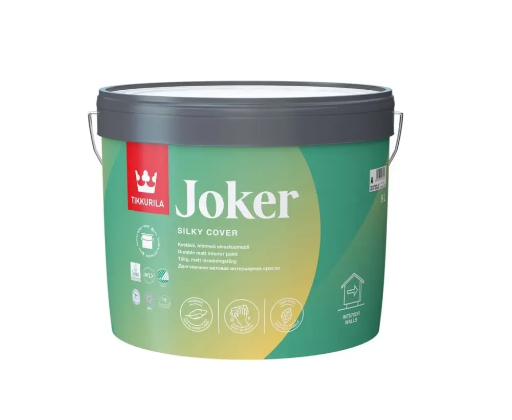 ​Tikkurila Joker C 9 ლიტრი ინტერიერის საღებავი — ეს არის ეკოლოგიურად სუფთა, ჰიპოალერგიული, მქრქალი საღებავი, რომელიც განკუთვნილია კედლებისა და ჭერის შესაღებად მშრალ და ტენიან გარემოში. იგი გამოირჩევა მაღალი გამძლეობით, ადვილად იწმინდება და იდეალურია საბავშვო ოთახებისთვის.​