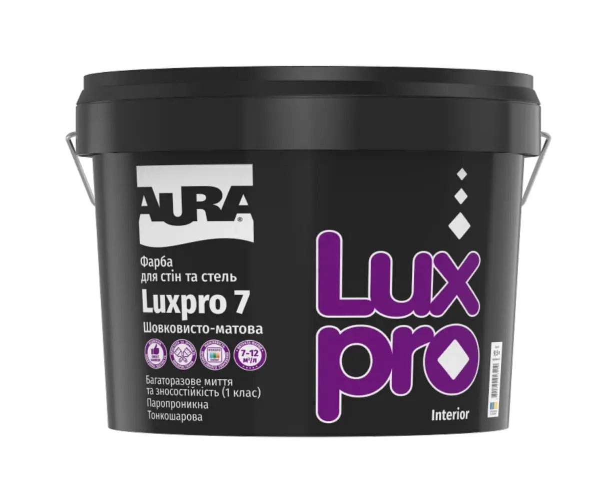 AURA Luxpro 7 ინტერიერისთვის განკუთვნილი აკრილის საღებავია, რომელიც გამოირჩევა მაღალი დაფარვით. საღებავი მარტივად ისმევა, თანაბრად ნაწილდება ზედაპირზე და ქმნის გლუვ, ელეგანტურ და მდგრად საფარს, რომელიც ანიჭებს სივრცეს დახვეწილ იერსახეს. საღებავი განკუთვნილია როგორც საცხოვრებელი, ისე კომერციული სივრცეებისთვის, მათ შორის ოფისებია, საბავშვო და სასკოლო ოთახებია, სამზარეულოებია, დერეფნების, ფოიეებისა და სხვა საზოგადოებრივი ადგილებისათვის, სადაც საჭიროა გამძლე და ვიზუალურად ესთეტიკური ფერი. მისი გამორჩეული თვისებები საშუალებას იძლევა გამოყენებულ იქნას მრავალფეროვან ზედაპირებზე, მაგალითად: ბეტონზე, აგურზე, შელესილ ან შპაკლიან კედლებზე. AURA Luxpro 7 ეკოლოგიურად უსაფრთხოა, არ შეიცავს მავნე გამხსნელებს და სრულად აკმაყოფილებს სტანდარტებს.
