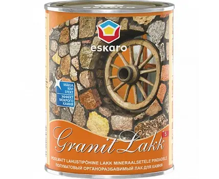 Eskaro Granit Lakk S არის ლაქი სპეციალური ორგანულგამხსნელი აკრილის ფისის საფუძველზე, გამოიყენება ქვის ზედაპირის დეკორატიულ-დამცავი მოპირკეთებისთვის. ქმნის "სველი ქვის" ეფექტს. შესანიშნავი ადჰეზია მკვირვ და ძნელად შეღწევად მასალებთან. იდეალური გადაწყვეტილება ტროტუარის ფილებისთვის.