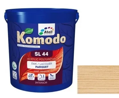 Komodo Parquet SL-44 არის აკრილ-პოლიურეთანის წყალ-დისპერსიული ლაქი, გამოიყენება პარკეტის იატაკის და ხის ნაკეთობების მოსაპირკეთებლად შენობის შიგნით ნორმალური და მომატებული ნესტიანობით. შესანიშნავი მდგრადობა ცვეთის მიმართ საშუალო დატვირთვისას.