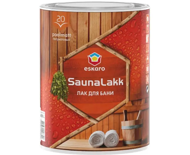 წყლით გასახსნელი ნახევრად გლუვი აბანოს ლაქი Eskaro SaunaLakk 0.95 ლ