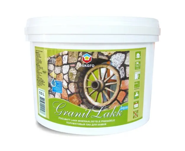 წყლით გასახსნელი ნახევრად მქრქალი აკრილის ლაქი "Eskaro Granit" გამოიყენება ზედაპირის დასაცავად ატმოსფერული ზემოქმედებისაგან. ყველაზე გავრცელებული მოხმარების ობიექტებია: ფასადის ელემენტები და მოაჯირები, ქვის ტერასები, ტროტუარები, იატაკის და კედლის ფილები, ბუხრის მოსაპირკეთებელი ქვები, ქვის დეკორის ელემენტები შენობაში და ა.შ. შეიცავს ცვილს, რომელიც ხელს უშლის ტენის შეღწევას.