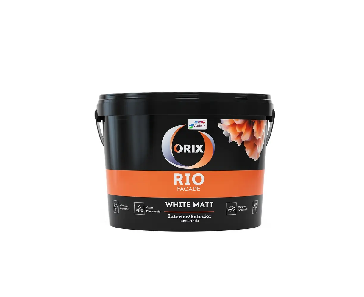 ORIX Rio White Matt Facade Paint – მაღალი ხარისხის ფასადური საღებავი, რომელიც განკუთვნილია ფასადებისა და ტერასების, აგურების, ვერცხლებისა და ლოგოების შესაღებად. უზრუნველყოფს ერთგვაროვან, მქრქალ საფარს და ამავე დროს იცავს ზედაპირს გარე ზემოქმედებისგან. საღებავი გამოირჩევა მაღალი გამძლეობით, წყალგამძლეობითა და ტენიანობის მიმართ მდგრადობით, რაც მას იდეალურ არჩევანს ხდის ექსტერიერის სამუშაოებისთვის.