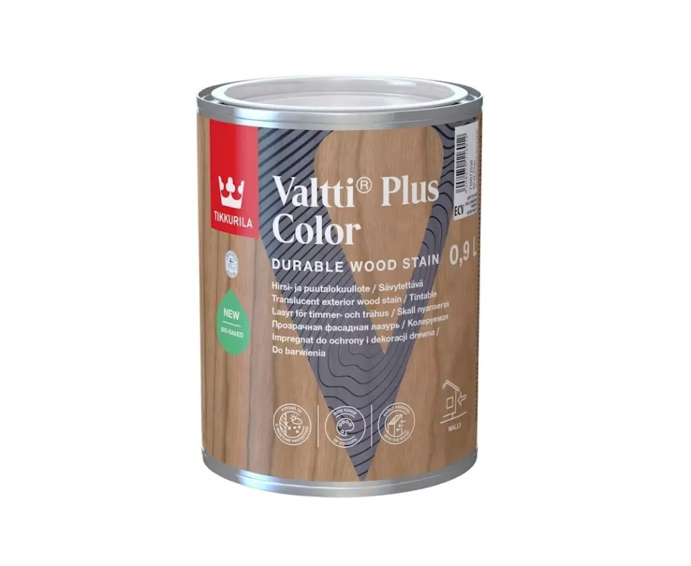 ლაზური ხის ზედაპირებისთვის Tikkurila Valtti Plus Color ECV 0.9 ლ გამჭვირვალე