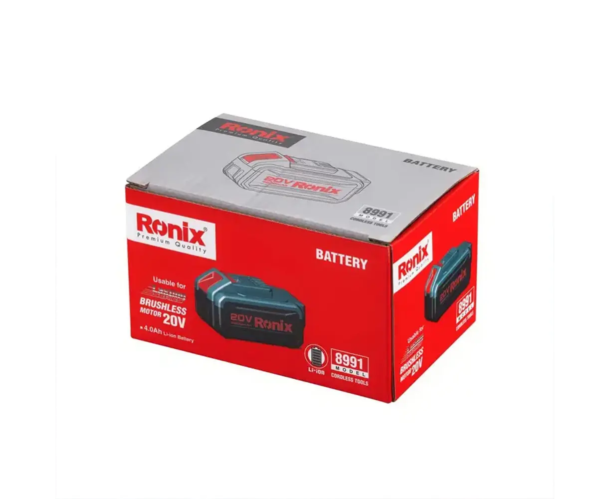 20 ვ ელექტრული ძაბვით და 4 ამპერიანი მომარაგებით, Ronix 8991 ლითიუმ-იონური ბატარეა არის უნივერსალური ენერგიის წყარო 89 სერიის ყველა უსადენო ხელსაწყოსთვის. მისი მსუბუქი და კომპაქტური დიზაინი კომფორტულ გამოყენებას უზრუნველყოფს, ხოლო მეხსიერების ეფექტისა და თვითდამუხტვის არქონა მაქსიმალურ პროდუქტიულობასა და მინიმალურ შეჩერებას იძლევა.