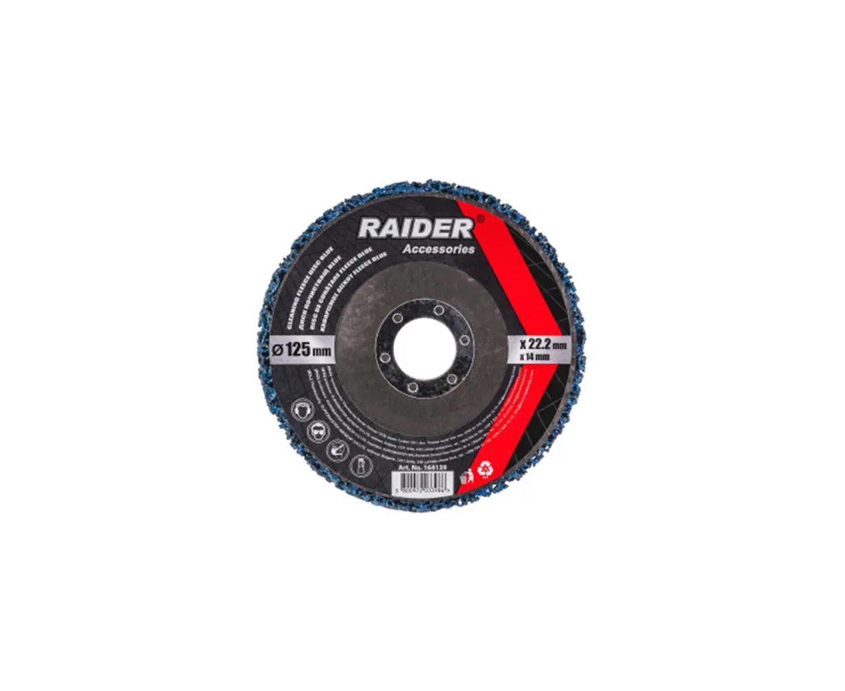 Raider 164139 დისკი გამძლე და მრავალმხრივი ინსტრუმენტია, განკუთვნილი ზუსტი ჭრისა და გასუფთავებისათვის. დისკის დიამეტრი 125 მმ, ხვრელის დიამეტრი 22.2 მმ, სისქე 14 მმ, ხოლო ფერი ლურჯი, რაც იდეალურია მძიმე სამუშაოებისთვის.
