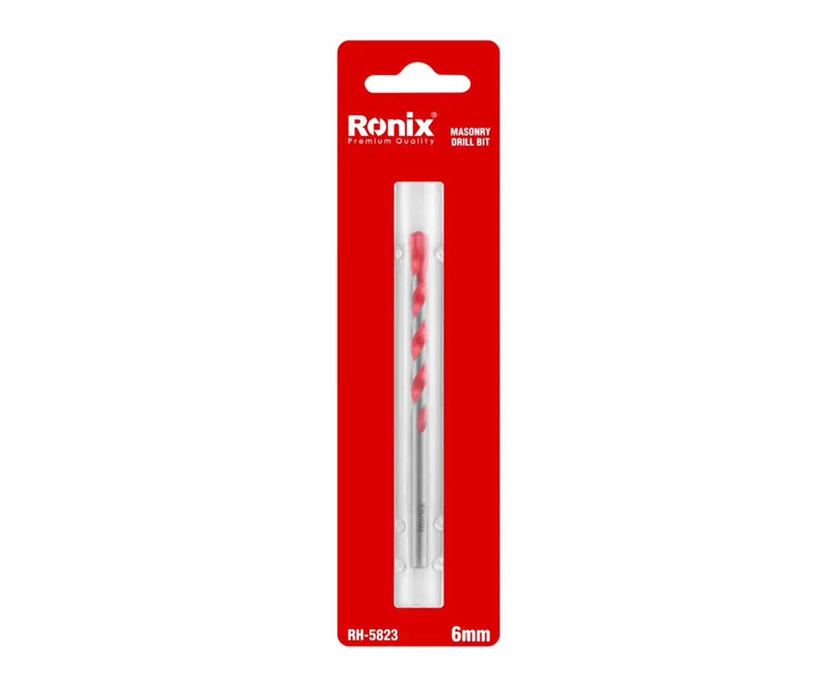 Ronix RH-5823 — 6 მმ ბურღი ქვისთვის, შექმნილია ბეტონში, ფილაში, აგურსა და სხვა მყარ მასალებში მარტივი და ზუსტი ბურღვისთვის. ის დამზადებულია მაღალი ხარისხის 45# ფოლადისგან და აღჭურვილია YG8C კარბიდის წვერით, რაც უზრუნველყოფს გამძლეობას და ხანგრძლივ სისწრაფეს. იდეალურია როგორც პროფესიონალებისთვის, ისე მოყვარულებისთვის, სხვადასხვა სამუშაოების შესასრულებლად. თავსებადია ყველა სტანდარტულ ელექტრო ინსტრუმენტთან მარტივი გამოყენებისთვის.