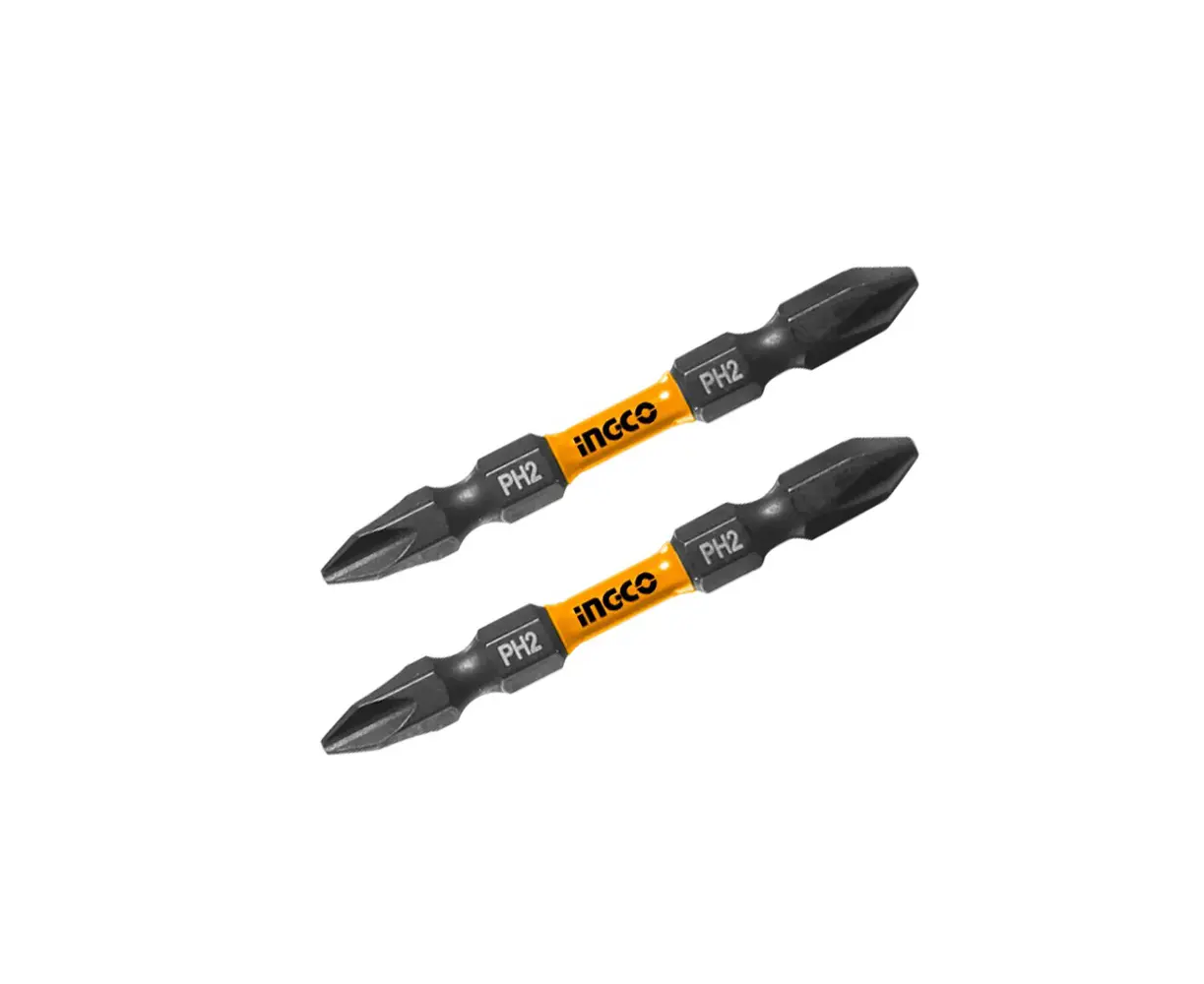 ორმხრივი ბიტების ნაკრები Ingco SDBIM72PH265 დამზადებულია გამძლე და მაღალი ხარისხის ფოლადისგან, რაც უზრუნველყოფს გამძლეობას და მაღალ დატვირთვებზე მუშაობის უნარს. კომპლექტში შედის ორი ორმხრივი ბიტი PH2 და PH2.65 ზომებით, რაც შესაფერისია სხვადასხვა ტიპის Phillips ხრახნებისთვის. იდეალურია როგორც პროფესიონალური, ისე საოჯახო გამოყენებისთვის.