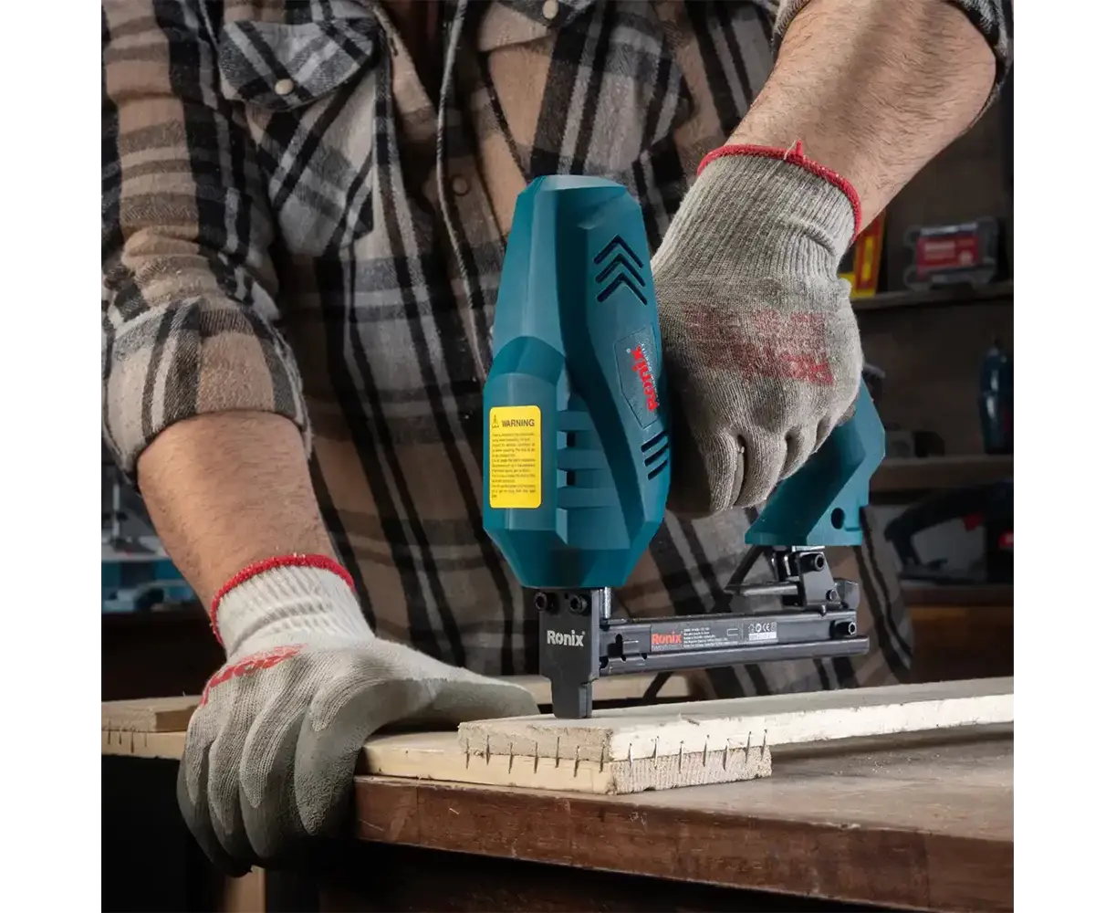სტეპლერი ელექტრო Ronix 7516(2200 ვტ) უზრუნველყოფს სტაბილურ მუშაობას 35 გასროლით წუთში და იტევს 125 ლურსმანს. თავსებადია 6–16 მმ ლურსმნებთან და გამოდგება ხის სამუშაოებისთვის, პანელირებისა და მსუბუქი კონსტრუქციებისთვის.