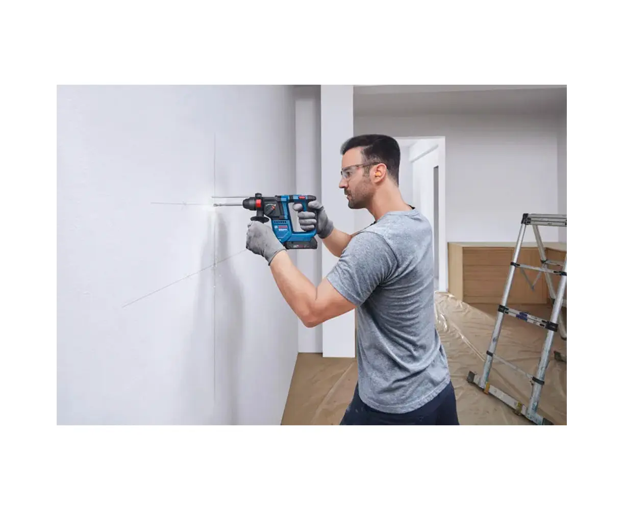 Bosch GBH 18V-18 Professional პერფორატორი სწორედ ის ინსტრუმენტია, რომელიც თქვენ გჭირდებათ. კომპაქტური, მაგრამ ძლიერი, ეს აკუმულატორის პერფორატორი აღჭურვილია KickBack Control ფუნქციით, რომელიც მაშინვე აჩერებს ძრავს, თუ ბურღი მასალაში გაიჭედება და ხელს უშლის უკუცემით გამოწვეულ ტრავმებს. Vibration Control სისტემა ამცირებს ვიბრაციას და ამსუბუქებს ხელების დაღლილობას მუშაობისას. მსუბუქი პერფორატორი სრულ ძალას ავლენს მხოლოდ 18V 2.0 Ah ბატარეითაც კი, რაც ძლიერ ენერგიას ბევრად უფრო მოსახერხებელს ხდის. ერთი სრული დამუხტვით შესაძლებელია 50 ხვრელის გაბურღვა ბეტონში, მისი ძლიერი უნახშირო ძრავის წყალობით, რომელიც უზრუნველყოფს უწყვეტ ძალას და სტაბილურ სიჩქარეს.