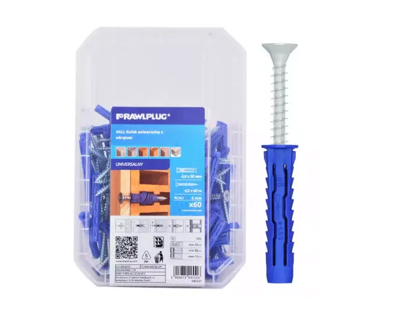 დიუბელი უნივერსალური 4ALL RawlPlug 6x50 მმ სჭვლით 4,5x60 მმ 60 ც R-SL3-4ALL06L+4560