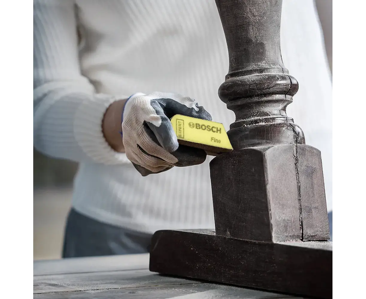 აბრაზიული ღრუბელი EXPERT S471 იდეალურია ბრტყელი ზედაპირებისა და 90-გრადუსიანი კუთხეების გასაპრიალებლად. მისი მოხმარების ვადა ხუთჯერ მეტია, ვიდრე ჩვეულებრივი აბრაზიული ღრუბლებისა, ასევე შესაძლებელია მისი რეცხვა და მრავალჯერადი გამოყენება. ეს ახალი შლიფის ღრუბელი აღჭურვილია Bosch Surface Structure ტექნოლოგიით, რომელიც აერთიანებს წებოვნებისა და ზედაპირის საფარის უახლეს მეთოდებს მარცვლების საიმედოდ დასამაგრებლად. ღრუბელი EXPERT S471 გამოირჩევა განსაკუთრებული სიმტკიცითა და გამძლეობით, არ კარგავს მარცვლებს კიდეებსა და კუთხეებზე მუშაობისას და უზრუნველყოფს მარტივ და კომფორტულ გამოყენებას სხვადასხვა ფორმისა და მასალის ზედაპირების ხელით გასაპრიალებლად. ყვუთეკუ ფერი მიუთითებს წვრილ მარცვლიანობაზე, რომელიც გამოიყენება როგორც შლიფისთვის, ისე ძირითადად – გასაპრიალებლად. ღრუბლები EXPERT რეკომენდებულია ხის, პლასტმასისა და ლითონის ტექსტურირებისთვის შეღებვამდე, ასევე ლაქებისა და საღებავების შუალედური გაპრიალებისთვის. ისინი იდეალურია ღრმულების, მრუდე ზედაპირებისა და ისეთი მასალების, როგორიცაა ფითხის და ბათქაშის, ზუსტი გაპრიალებისთვის.