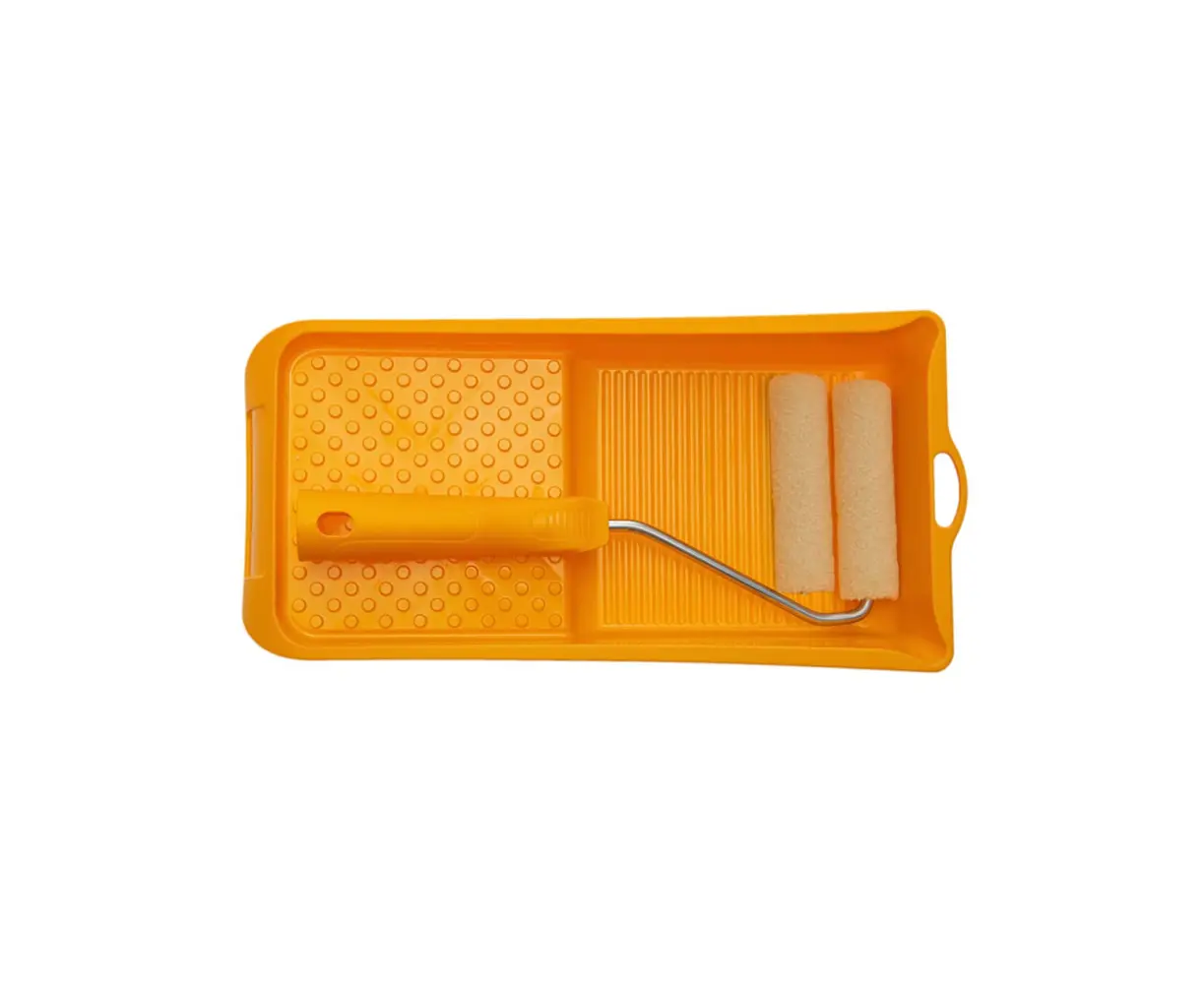 COLOR EXPERT 86612099-ის კომპლექტში შედის ორი მინი როლიკი სახელურით და ჭურჭლით, თითოეული სიგანით 100 მმ. როლიკები წარმოდგენილია კაშკაშა სტაფილოს ფერით, რაც იდეალურია ზუსტი და გლუვი შეღებვისთვის.