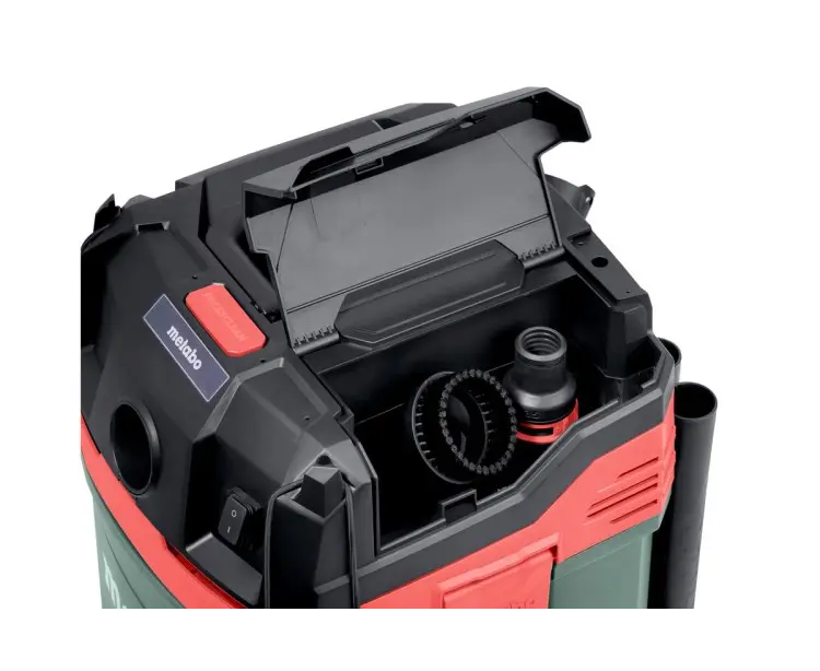 კომპაქტური მტვერსასრუტი ჩაშენებული ფილტრის საწმენდით უნივერსალური გამოყენებისთვის. სწრაფი შეერთება MetaBOX ხელსაწყოებთან და აქსესუარებთან მტვერსასრუტზე.მტვერსასრუტი სითხეებისა და მშრალი ნივთიერებებისთვის. ელექტრული ხელსაწყოებიდან მტვრის მოსაშორებლად და სამშენებლო უბნების, სახელოსნოების და ა.შ. გასაწმენდად. PressClean: ასუფთავებს ფილტრს ძლიერი ჰაერის ნაკადით. მომხმარებლის დაცვა: სერთიფიცირებულია ევროკავშირის მიერ მტვრის L კლასის მიხედვით. შესრუტვა ჩერდება სითხეების შეგროვებისას, როდესაც მიიღწევა მაქსიმალური შევსების დონე. შესრუტვის შლანგის სრული დაცლის ავტომატური მექანიზმი. მარტივი ტრანსპორტირება, აქსესუარების პრაქტიკული ფუტლარი და შესანახი განყოფილება. პრაქტიკული აქსესუარების ყუთი გადასაწევი სახურავით მცირე დეტალების შესანახად. კომპლექტაცია მოიცავს აქსესუარებს მტვერსასრუტისთვის სწრაფი შეცვლის სისტემით გამოყენების დროს.