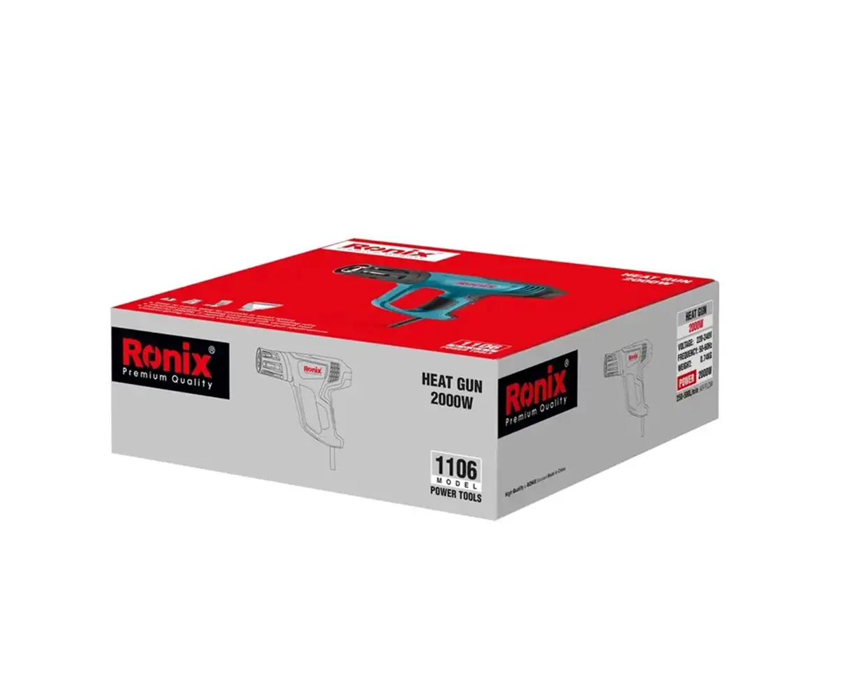 არსებობს სამრეწველო თერმოფენების მრავალი გამოყენება, რაც შეიძლება გაგახსენდეთ. ცხელი ჰაერის ნაკადის წარმოქმნა სხვადასხვა მიზნებისთვის, როგორიცაა საღებავის მოცილება, პლასტმასის შედუღება, ელექტრონული შეკეთება, ლაქირება, თერმოშემცირება, გაშრობა და გალღობა, შეიძლება მარტივად შესრულდეს თერმოფენის გამოყენებით. თავისთავად ცხადია, რომ ელექტრო თერმოფენის ქონა, რომელიც არის როგორც ძლიერი, ასევე ეფექტური, დიდი შვებაა. სამ სიჩქარიანი, ინტელექტუალური ტემპერატურის რეგულირების სისტემით, Ronix 1106 ელექტრო თერმოფენი უზრუნველყოფს მაქსიმალურ კონტროლს ყველა თერმოფენის გამოყენებაზე. ეს არის 2000 ვტ-იანი გათბობის გიგანტი. მისი მაღალი სიმძლავრის იაპონური SCRUB უნახშირო ძრავა, რომელიც ზუსტად და ეფექტურად აწვდის სითბოს სხვადასხვა ამოცანისთვის, მისი ყველაზე მნიშვნელოვანი მახასიათებელია.