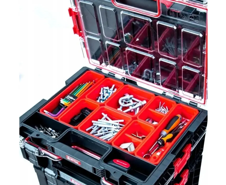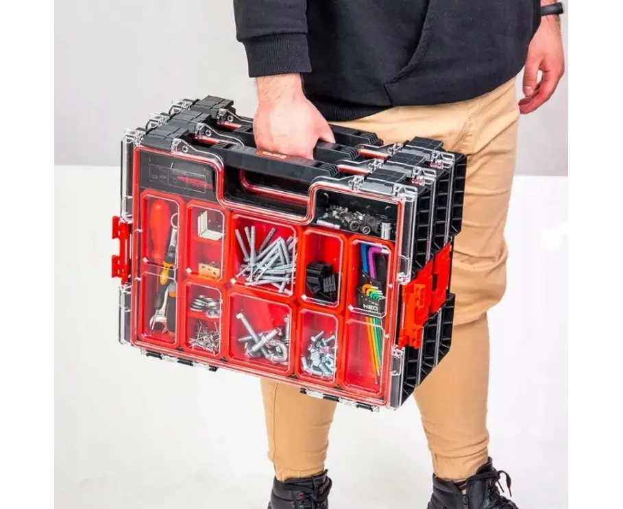 მოდულური ორგანაიზერი 8 მოსახსნელი კონტეინერით და 2 განყოფილებით, იდეალურია როგორც დამოუკიდებელი ორგანიზატორი, ან შეიძლება გაერთიანდეს Qbrick PRO სისტემაში.