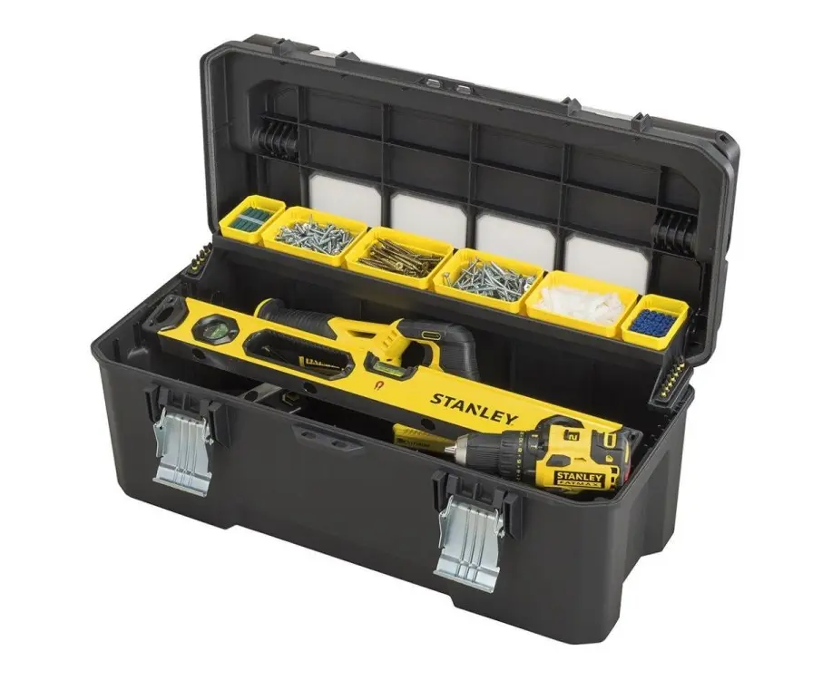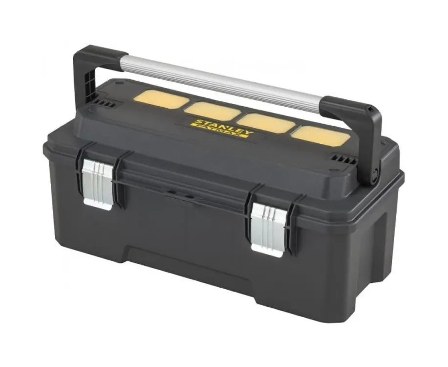 Stanley FMST1-75791 დამზადებულია გამძლე პლასტმასისგან, მდგრადია გარემო ზემოქმედების მიმართ (IP54). კონსოლური კონსტრუქცია უზრუნველყოფს 2 დონიან სამუშაო სადგურს. გრძელი ალუმინის სახელური უზრუნველყოფს მოსახერხებელ მოჭიდებას.