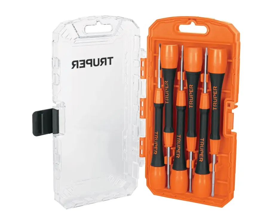 პრეზიციული სახრახნისების ნაკრები. ერგონომიული სახელური მბრუნავი თავსახურით უკეთესი კონტროლისთვის.