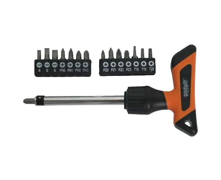 სახრახნისი-ჭრიალა T ტიპის + ბიტების ნაკრები Gadget 225204 16 ც