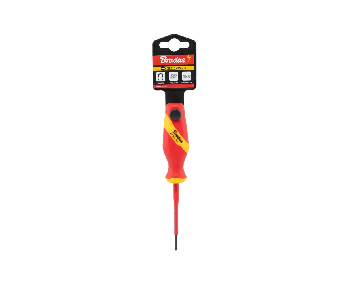 BRADAS DIY-SL1225075-V ფილიფსის სახრახნისი არის კომპაქტური და საიმედო ხელსაწყო, რომელიც განკუთვნილია უსაფრთხო და ზუსტი სამუშაოებისთვის. მისი სიგრძე შეადგენს 75 მმ-ს, ხოლო SL2.5 წვერი იდეალურია წვრილი და დეტალური სამუშაოებისთვის. მაგნიტური წვერი უზრუნველყოფს ხრახნების საიმედო დაფიქსირებას, ხოლო ქრომ-ვანადიუმის ფოლადის კონსტრუქცია გარანტიას იძლევა გამძლეობაზე და ხანგრძლივ მომსახურებაზე. დამტკიცებულია 1000 ვ-მდე ძაბვის ქვეშ ნაწილებზე მუშაობისთვის, რაც ამ სახრახნისს აქცევს საუკეთესო არჩევანად როგორც ელექტრიკოსებისთვის, ასევე ყველასთვის, ვისაც სჭირდება საიმედო იზოლირებული ინსტრუმენტი.