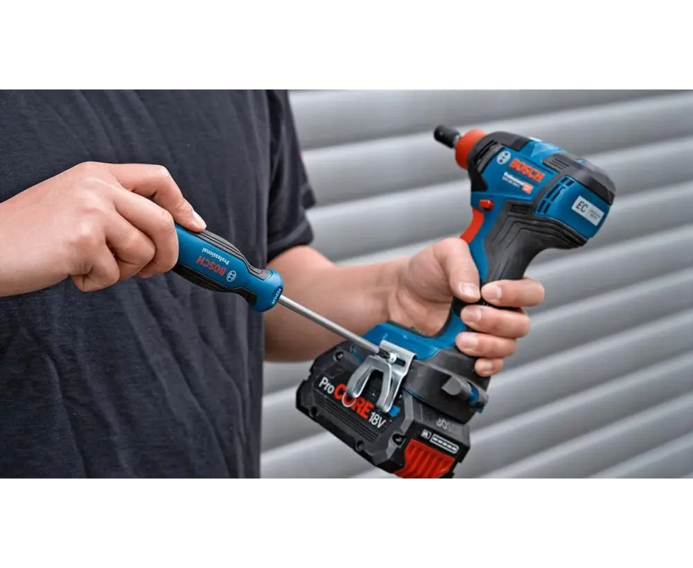 მტკიცე და გამძლე სახრახნისი ინსტრუმენტული ფოლადის S2 ღერძით, იდეალურია პროფესიონალებისთვის. მაღალი სიზუსტის წვერი უზრუნველყოფს ზუსტ შედეგებს. სახელურის ერგონომიული ფორმა და რბილი ზედაპირი უზრუნველყოფენ მარტივ და კომფორტულ გამოყენებას.