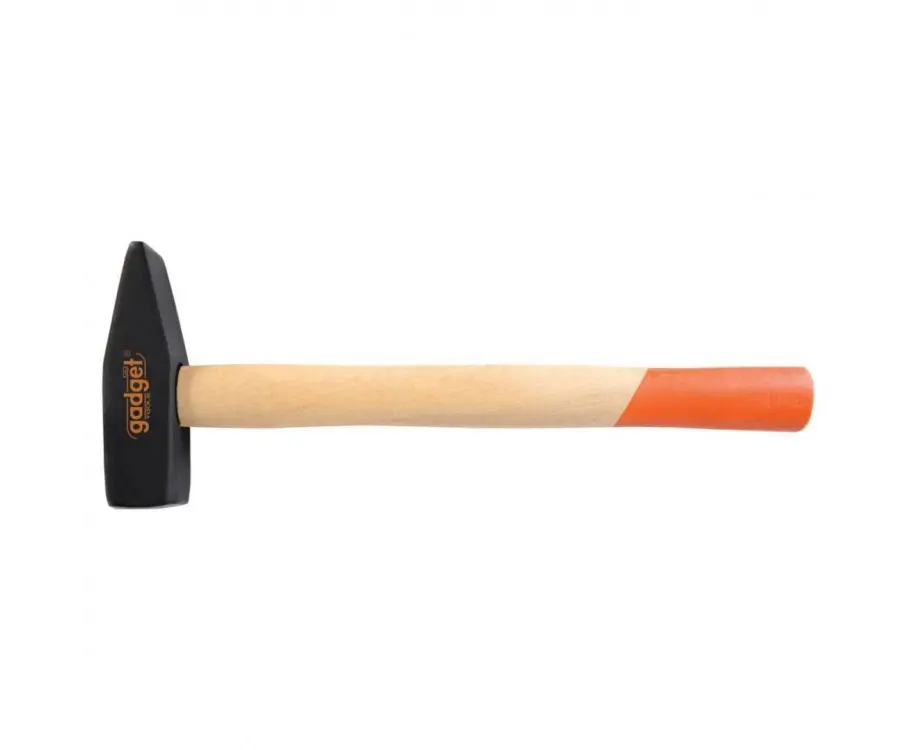 ეს არის ფოლადის ჩაქუჩი ერგონომიული ხის სახელურით.