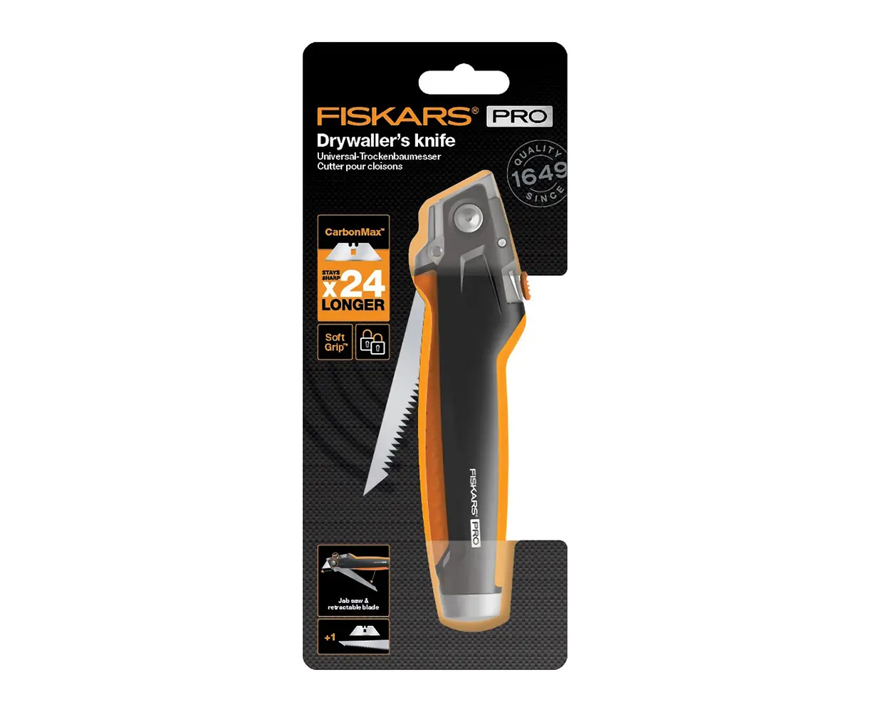 თაბაშირ-მუყაოს დანა Fiskars 1027226 CarbonMax (185 მმ) ერგონომიული სახელურით უზრუნველყოფს კომფორტულ მოჭიდებას და ზუსტ ჭრას. ყვითელი-შავი დიზაინი უკეთეს ხილვადობას ქმნის.
