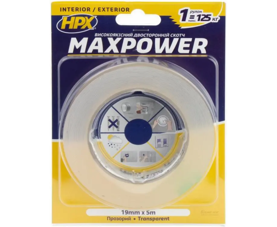ლენტი ორმხრივი გამჭვირვალე HPX Maxpower HT1905 5Mx19MM