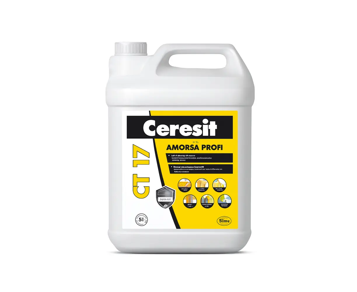 Ceresit CT 17 Profi არის ღრმად შეღწევადი გრუნტი, რომელიც განკუთვნილია ზედაპირების გასამაგრებლად და მომზადებისთვის შემდგომი სამუშაოების წინ. გამოიყენება როგორც შიდა, ისე გარე პირობებში კედლების, იატაკებისა და ჭერების პრაიმერად, სანამ დაიწყება კერამიკული ფილების დაგება, იატაკის ჩამოსხმა, ფერის დატანა, შპალერის გაკვრა ან თბოიზოლაციის ფარების მონტაჟი.