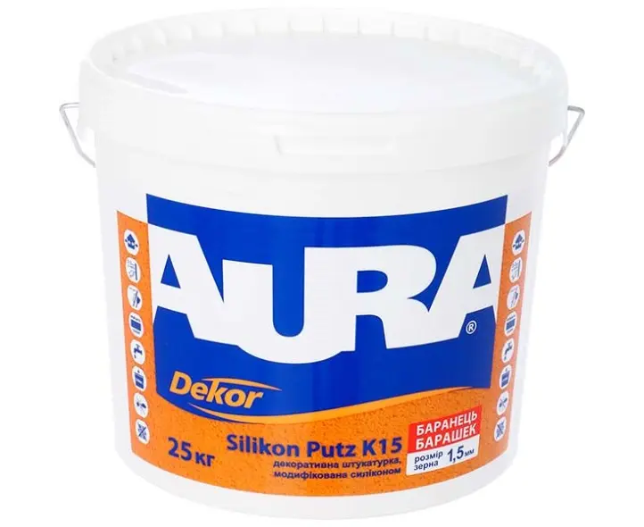 დეკოროტიული ბათქაში Eskaro Aura Dekor Silikon Putz К15 "барашек" 25 კგ