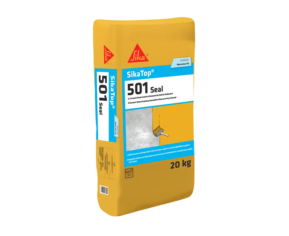 SikaTop-501 Seal არის ცემენტზე დაფუძნებული კაპილარულად კრისტალიზებადი ჰიდროიზოლაცია, რომელიც გამოიყენება როგორც ძველი, ისე ახალი ბეტონის კონსტრუქციებისა და კედლების დასაცავად. მასალა ქმნის კრისტალებს ბეტონის კაპილარულ ფორებში, რითაც უზრუნველყოფს წყლის შეღწევის ბარიერს. გამოსადეგია როგორც ნეგატიური (შიდა), ასევე პოზიტიური (გარე) წყლის ზეწოლის პირობებში.