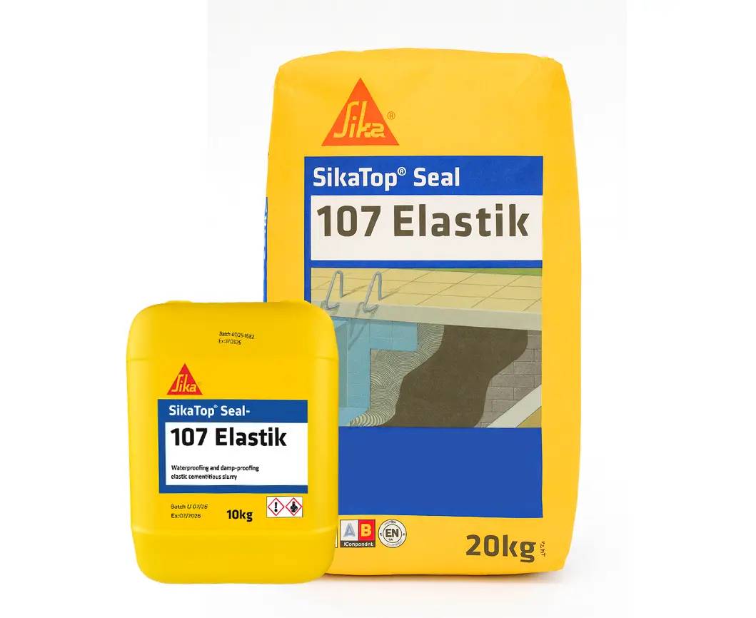 SikaTop Seal-107 Elastik არის ორკომპონენტიანი, ელასტიური ცემენტური ხსნარი, რომელიც გამოიყენება როგორც ჰიდროიზოლაცია და როგორც ტენიანობისგან დამცავი საფარი. იდეალურია ტერასების, აუზების, რეზერვუარების და სხვა წყალშემკრები ან ტენიან გარემოში არსებული კონსტრუქციების დასაცავად. უზრუნველყოფს მოქნილ, წყალგაუმტარ საფარს, რომელიც ეფექტურად ფარავს მიკრობზარებს და იცავს ზედაპირებს დაზიანებისგან.
