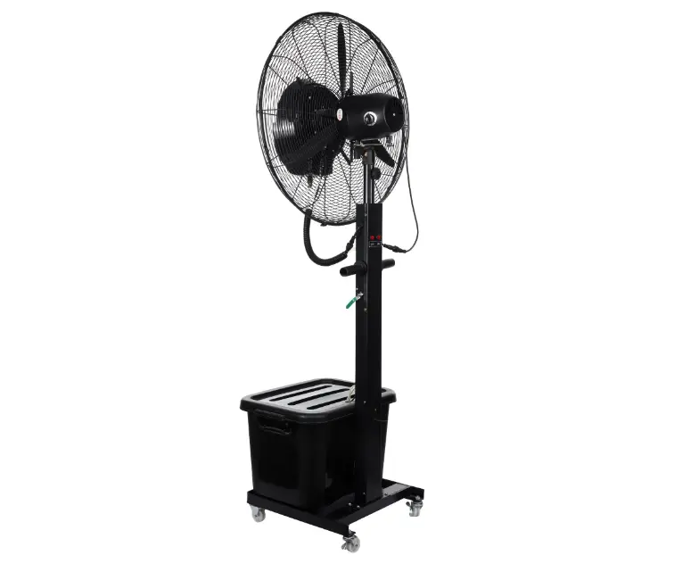 ვენტილატორი ატენიანებს ჰაერს მძლავრი ჰაერის ნაკადით წყლის მცირე წვეთოვანი შესხურების პრინციპით. როდესაც წყალი უორთქლდება, ის ამცირებს ტემპერატურას, ატენიანებს და ანახლებს ჰაერს. ამცირებს ასევე მტვრის რაოდენობას, დამატენიანებელი ვენტილატორი განკუთვნილია შიდა სივრცეებში მოხმარებისთვის მხოლოდ ვენტილაციის, დატენიანებისა და ჰაერის გასაწმენდად, ისეთ ოთახებში, როგორიცაა: სახელოსნოები, ზამთრის ბაღები, სათბურები.