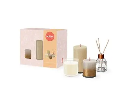 Bolsius Home Sweet Home-ის საჩუქრების ნაკრები აერთიანებს სილამაზესა და პრაქტიკულობას. კომპლექტში შედის არომატული და დეკორატიული სანთლები, ასევე ელეგანტური დიფუზორი, რომლებიც ერთად ქმნიან მყუდრო და ჰარმონიულ ატმოსფეროს. შეფუთულია დახვეწილ, ესთეტურ ყუთში, რაც მას იდეალურ საჩუქრად აქცევს ნებისმიერი შემთხვევისთვის.