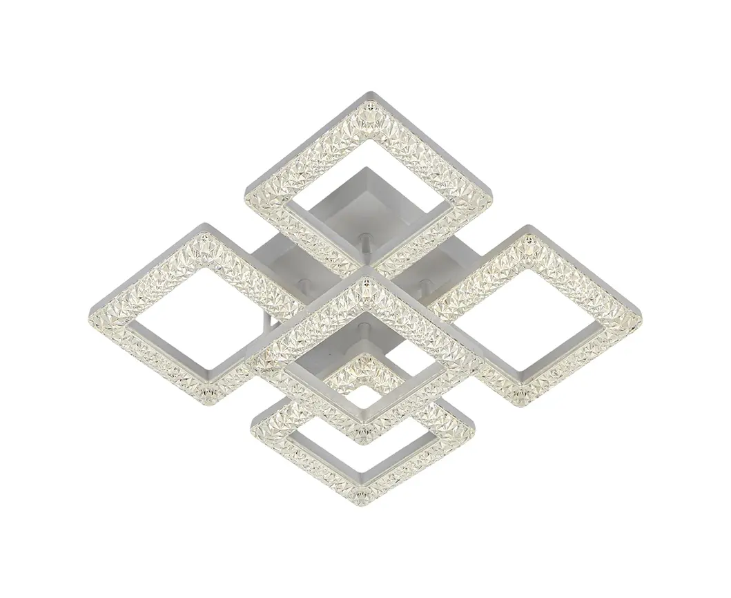 შთამბეჭდავი და თანამედროვე ჭერის სანათი დამზადებულია ოთხი გადაჯაჭვული კვადრატული LED ელემენტისგან, რაც ქმნის განსაკუთრებულ და არტისტულ ვიზუალს. ინტეგრირებული ენერგოეფექტური LED განათება უზრუნველყოფს თანაბარ, ძლიერ და თბილ განათებას, იდეალურია როგორც საცხოვრებელი, ასევე კომერციული სივრცეებისთვის.