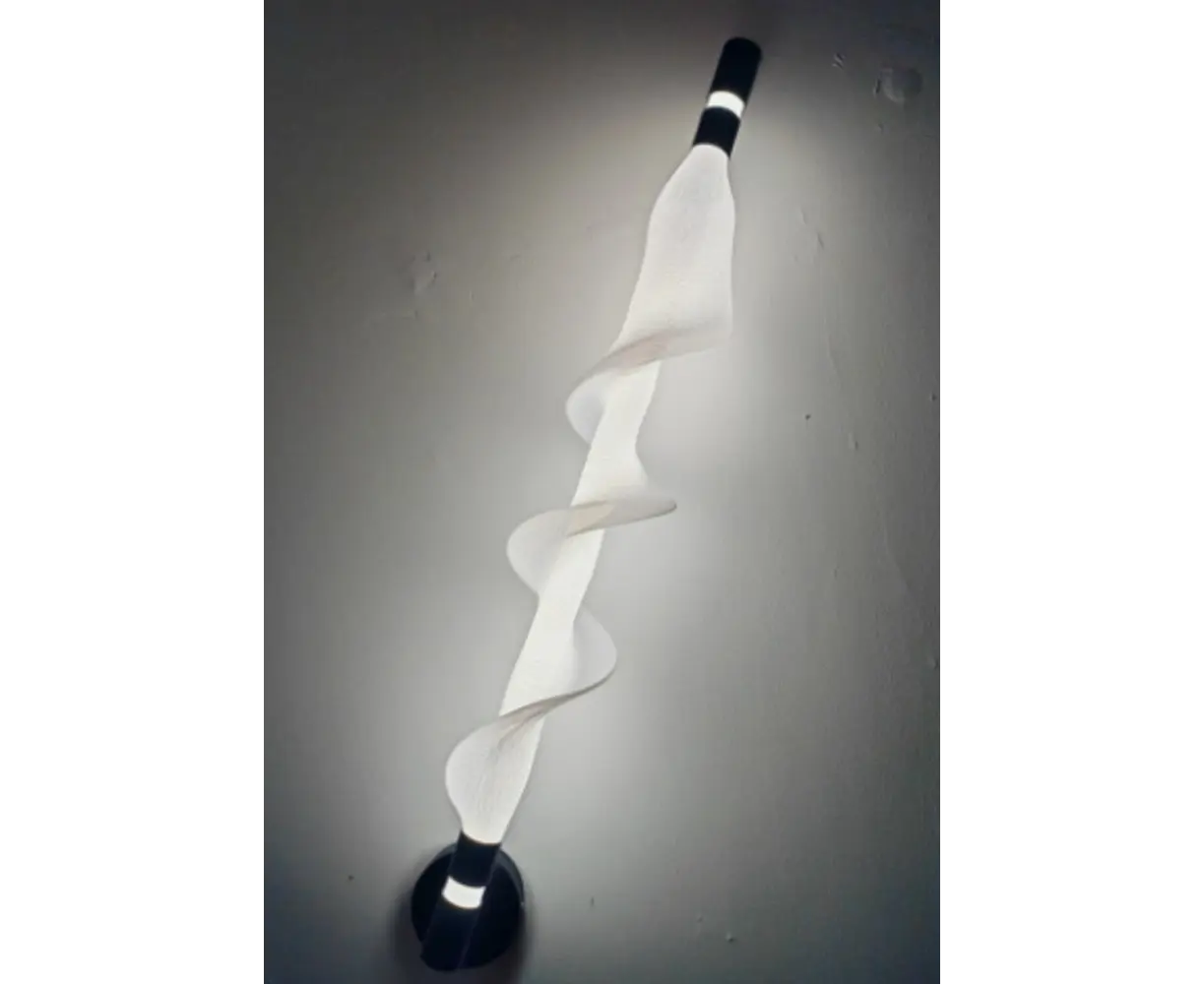 ეფექტური კედლის სანათი გამოირჩევა ინოვაციური, ტალღოვანი LED განათების დიზაინით, რომელიც ქმნის შთამბეჭდავ შუქ-ჩრდილის თამაშს. მინიმალისტურ შავ მეტალის ბაზას ერთვის მოქნილი ფორმის თეთრი ელემენტი, რაც ანიჭებს მოდერნულ და არტისტულ იერს. იდეალურია მისაღებში, დერეფანში, სასტუმროს ან კომერციულ სივრცეებში გამოსაყენებლად.