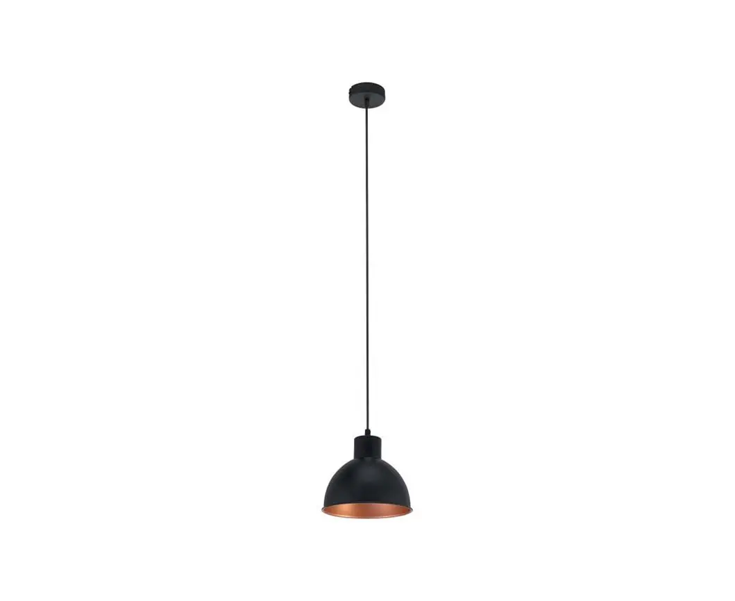 თანამედროვე და მინიმალისტური საკიდი შუქი შავი მეტალის ჩრდილით და სპილენძის ინტერიერით. მარტივი დიზაინი და კონტრასტული ფერები მას მრავალმხრივ აქცევს, რომელსაც შეუძლია შეავსოს ინტერიერის სხვადასხვა სტილი. სპილენძის ინტერიერი სინათლეს მატებს თბილ, მეტალის ბზინვარებას, ქმნის მყუდრო და მიმზიდველ ატმოსფეროს. ეს გულსაკიდი ნათურა შესანიშნავია თქვენი სახლის ნებისმიერ ოთახს, იქნება ეს სამზარეულო, სასადილო თუ მისაღები ოთახი, სამრეწველო ელეგანტურობის შესატანად.