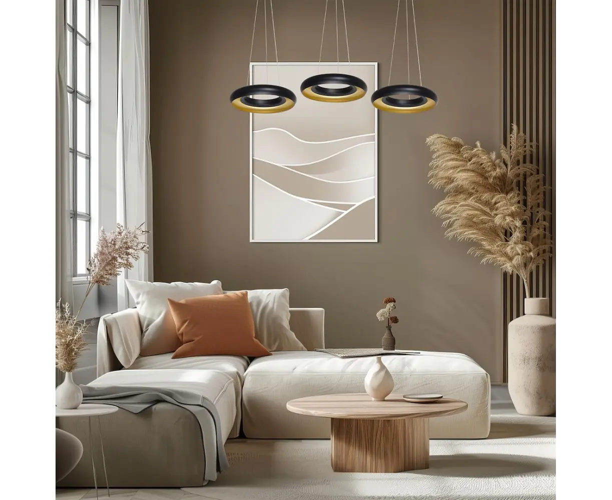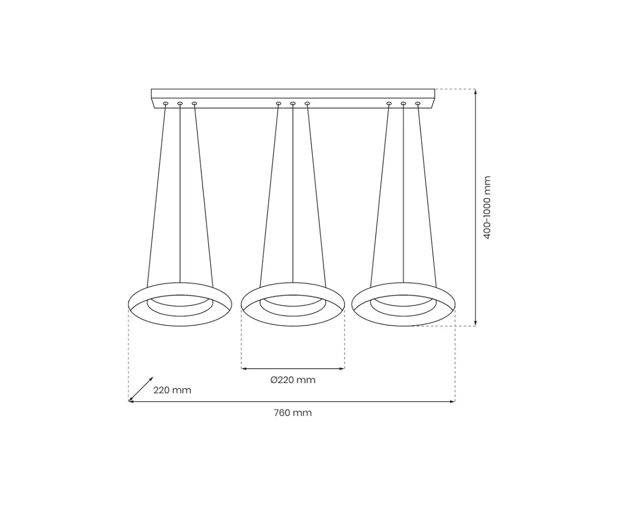 აღჭურვილია სამი სინათლის წყაროთი. შეიცავს LED მოდულებს საერთო სიმძლავრით 36 W. სანათის დამატებითი უპირატესობაა თითოეული მოწყობილობის სიმაღლის ცალ-ცალკე რეგულირების შესაძლებლობა 60-დან 100 სმ-მდე. ამ გადაწყვეტის წყალობით, არ არის პრობლემა სანათის მორგება ოთახის ნებისმიერ სიმაღლეზე. კომპლექტში შედის მისი აწყობისთვის საჭირო ელემენტები.