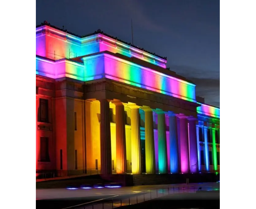 - ერთგვაროვანი ფასადის განათება - ლინიური ფორმა და სინათლის თანაბარი განაწილება გამოკვეთს არქიტექტურულ დეტალებს და ქმნის „ღამის ვიტრინის“ ეფექტს.