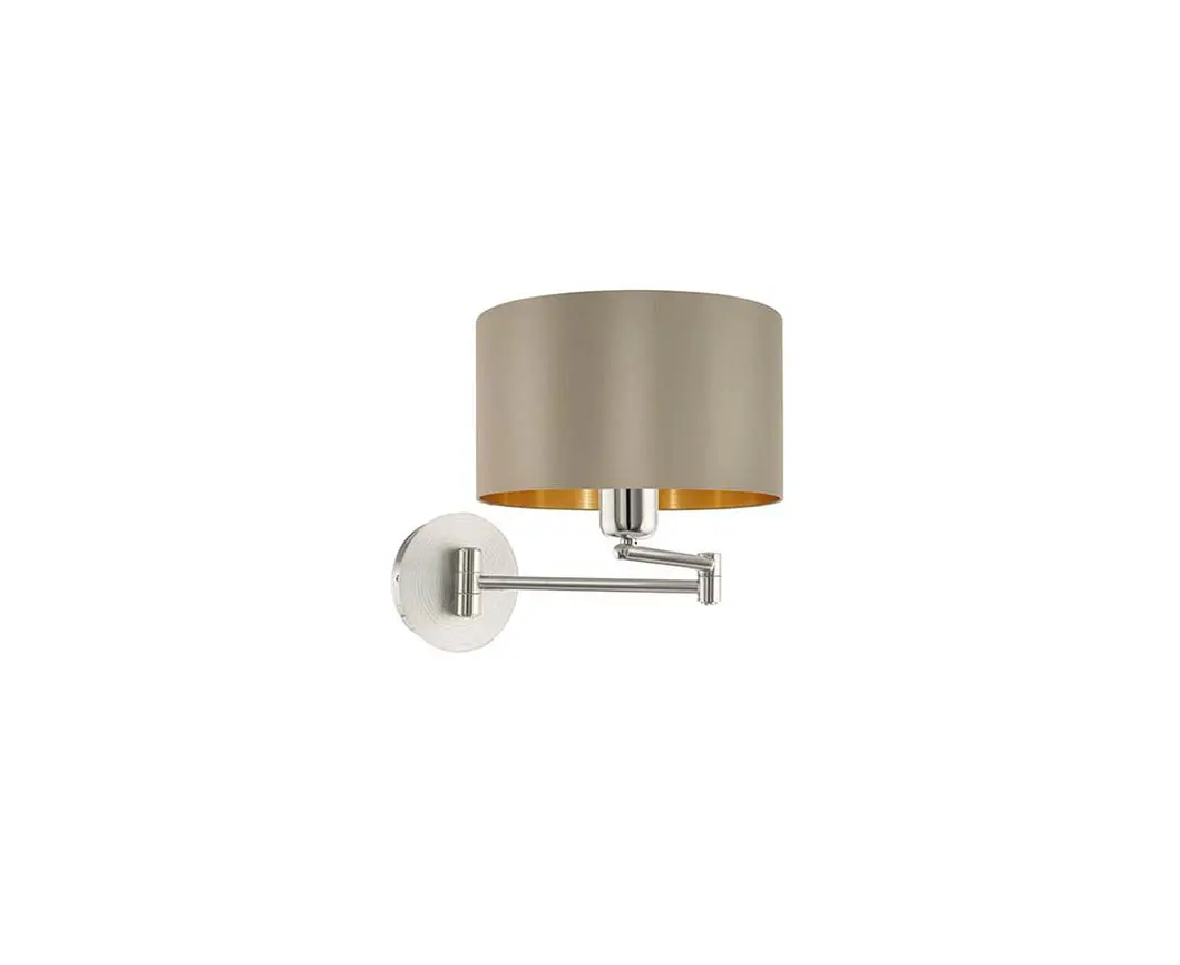 თანამედროვე, ფუნქციონალური კედლის სანათი თანამედროვე დიზაინით. კრემისფერი ქსოვილის ჩრდილი ოქროს ინტერიერით ქმნის თბილ და მიმზიდველ ბზინვარებას, ხოლო რეგულირებადი მკლავი საშუალებას გაძლევთ მიმართოთ შუქს იქ, სადაც ყველაზე მეტად გჭირდებათ. ქრომირებული ლითონის საყრდენი ელეგანტურობის ელფერს მატებს, რაც ამ კედლის განათებას შესაფერისს ხდის ინტერიერის სხვადასხვა სტილისთვის. ის შესანიშნავია კითხვისთვის, მუშაობისთვის ან ატმოსფეროს შესაქმნელად საძინებლებში, მისაღები ოთახებში ან დერეფნებში.