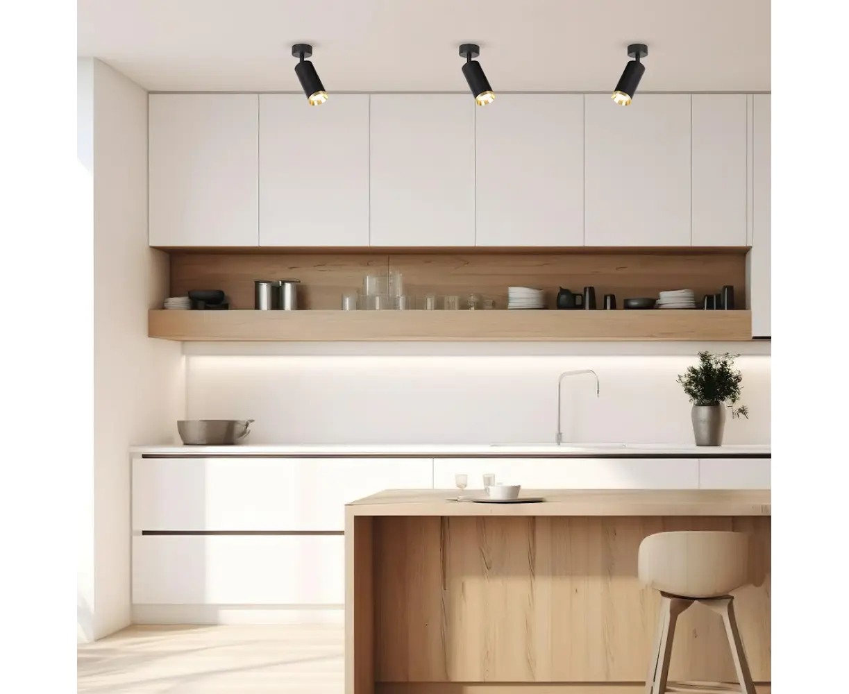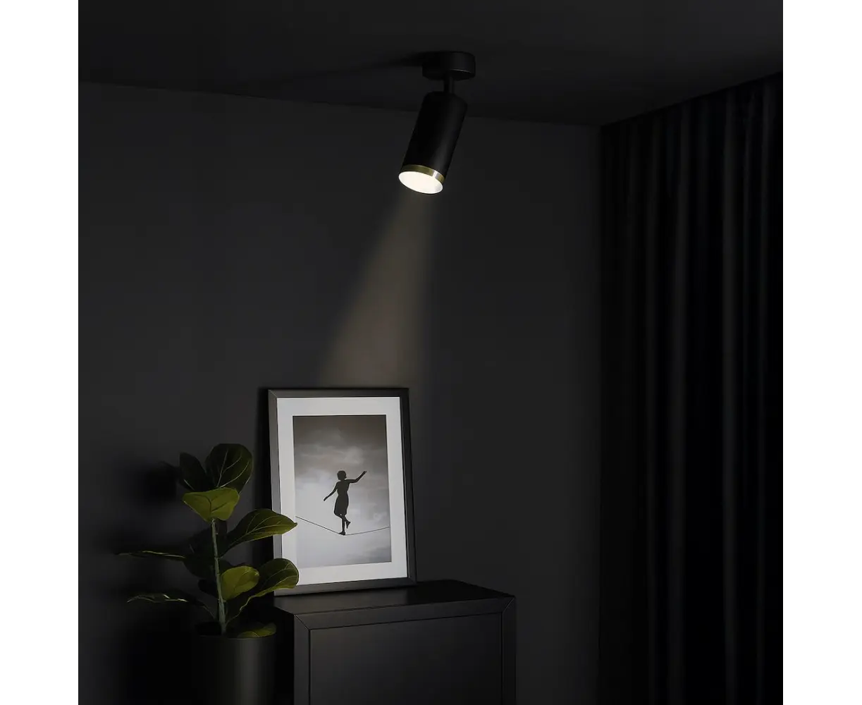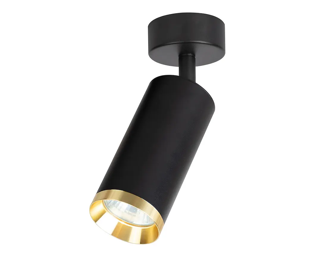 მინიმალისტური და თანამედროვე დიზაინის სპოტ სანათი, რომელიც იდეალურად ერგება როგორც ბინას, ისე კომერციულ სივრცეებს. მბრუნავი მექანიზმი საშუალებას იძლევა განათება მიმართოთ სასურველი მიმართულებით. გამძლე მეტალის კორპუსი და ოქროსფერი, შავი მატური საფარი ქმნის ელეგანტურ იერს.