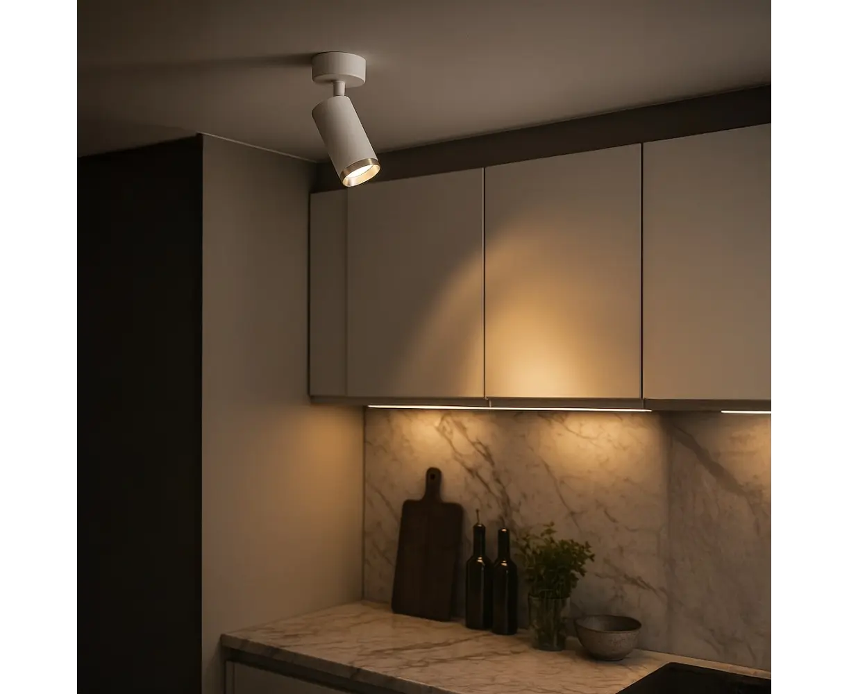 მინიმალისტური და თანამედროვე დიზაინის სპოტ სანათი, რომელიც იდეალურად ერგება როგორც ბინას, ისე კომერციულ სივრცეებს. მბრუნავი მექანიზმი საშუალებას იძლევა განათება მიმართოთ სასურველი მიმართულებით. გამძლე მეტალის კორპუსი და თეთრი მატური საფარი ქმნის ელეგანტურ იერს.
