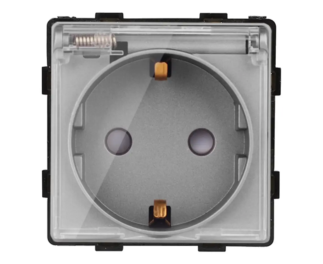 როზეტი ჩარჩოს გარეშე Socket Style 16A დამიწებით და შტორებით გამჭვირვალე თავსახურით ნაცრისფერი