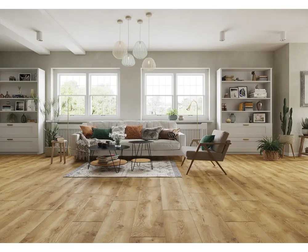 ეფექტური ლამინატი ელეგანტური დეკორით და ნატურალური ზედაპირით, მოუხდება ნებისმიერ ინტერიერს.