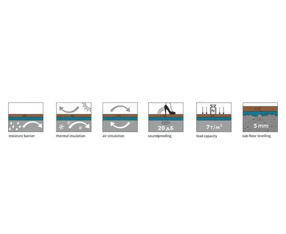 ქვესაგები Solid 1200х500х6mm Turquoise 6m2 გამოიყენება ლამინატის ქვეშ დასაგებად, გამორიცხავს ვიბრაციას, ასრულებს ამორტიზატორის და მათბუნებლის როლს.