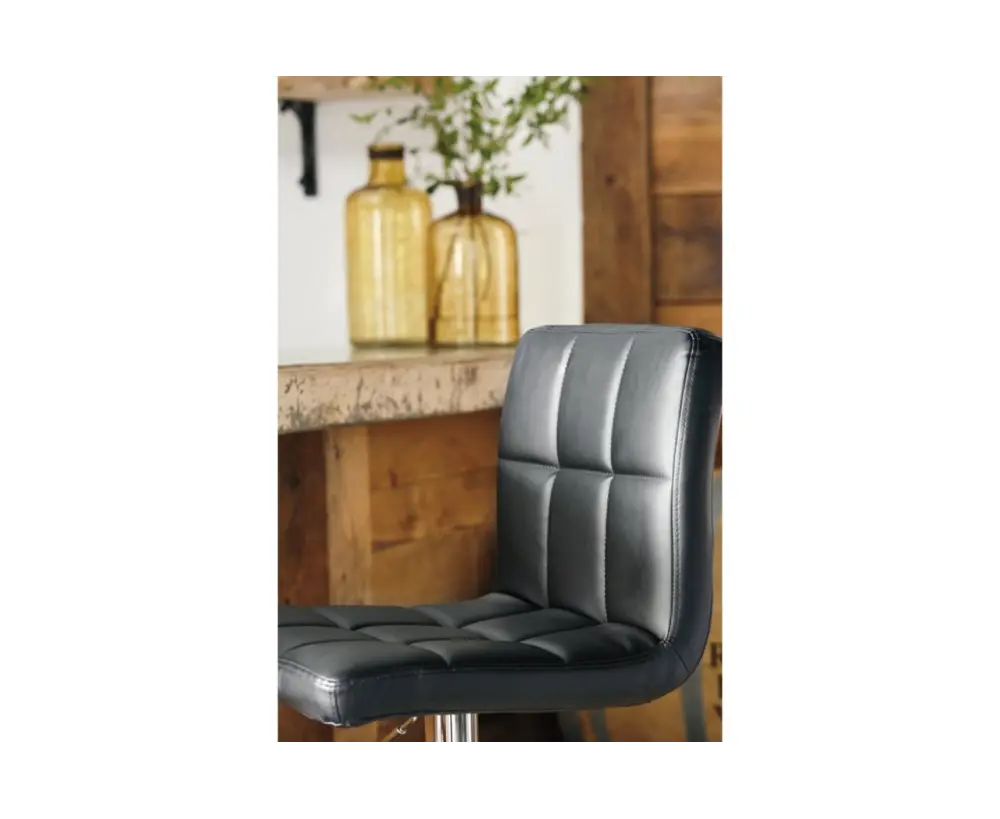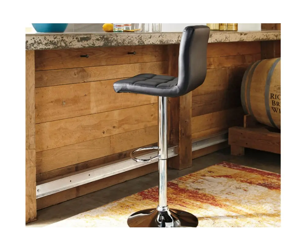 ეს თანამედროვე დიზაინის ბარის სკამი იდეალურია როგორც სახლის, ისე კაფესა და ბარის ინტერიერისთვის. იგი გამოირჩევა ელეგანტური შავი ფერით, მაღალი ზურგითა და კომფორტული რბილი სავარძლით. აღჭურვილია 360 გრადუსიანი მბრუნავი მექანიზმით, რაც უზრუნველყოფს მოხერხებულ გადაადგილებასა და სრულ მოქნილობას.